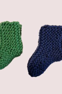 Aus Hochwertigen und interessanten Garnen, von Sockenwolle in den tollsten Farben bis zum witzigen Topflappen.